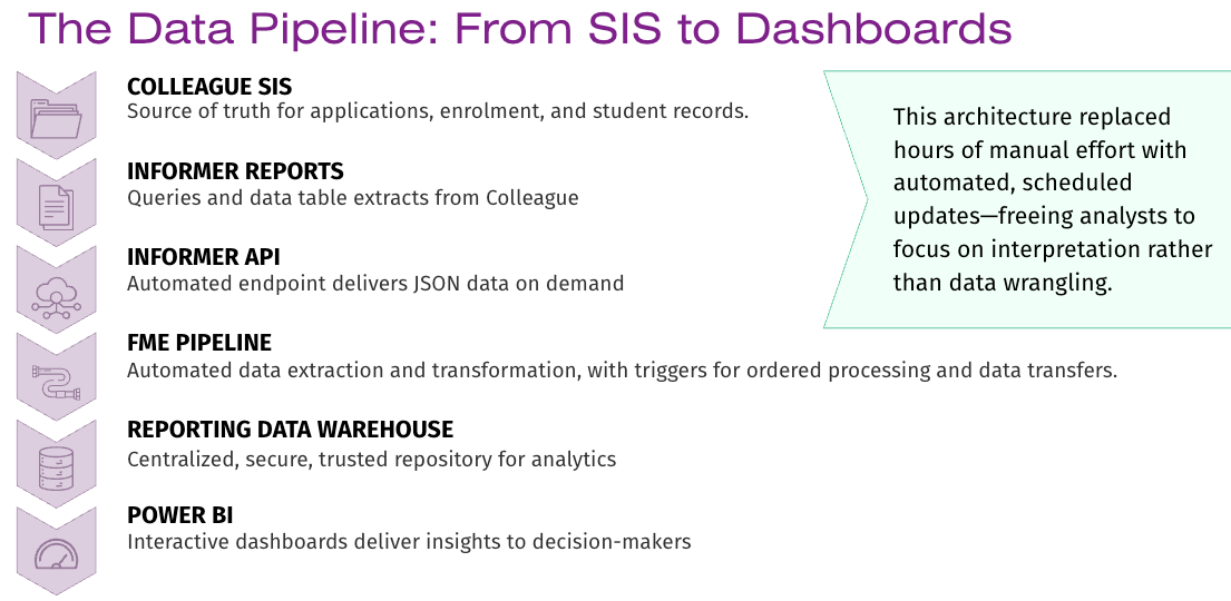 The presentation focused on how automating data out of a live system (Informer) into a data warehouse set up specifically for reporting not only sped up report development, but sparked demand for more analytics and created institutional momentum for data governance, standardization, and proactive planning. If you're a CIRPA member, the session recording is still available on the conference website.